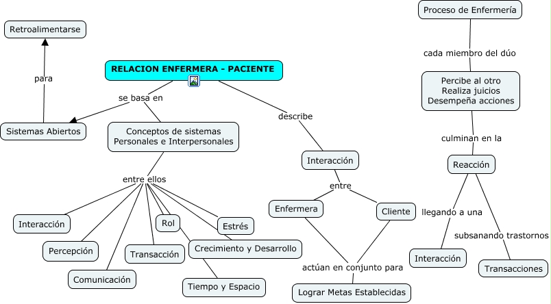 Este Cmap, tiene información relacionada con: Imogene King, Conceptos de sistemas Personales e Interpersonales entre ellos Crecimiento y Desarrollo, Conceptos de sistemas Personales e Interpersonales entre ellos Tiempo y Espacio, Reacción llegando a una Interacción, Conceptos de sistemas Personales e Interpersonales entre ellos Rol, Sistemas Abiertos para Retroalimentarse, Percibe al otro Realiza juicios Desempeña acciones culminan en la Reacción, RELACION ENFERMERA - PACIENTE se basa en Conceptos de sistemas Personales e Interpersonales, Interacción entre Enfermera, Interacción entre Cliente, Reacción subsanando trastornos Transacciones, RELACION ENFERMERA - PACIENTE se basa en Sistemas Abiertos, Conceptos de sistemas Personales e Interpersonales entre ellos Estrés, Conceptos de sistemas Personales e Interpersonales entre ellos Transacción, Enfermera actúan en conjunto para Lograr Metas Establecidas, Cliente actúan en conjunto para Lograr Metas Establecidas, Conceptos de sistemas Personales e Interpersonales entre ellos Comunicación, RELACION ENFERMERA - PACIENTE describe Interacción, Conceptos de sistemas Personales e Interpersonales entre ellos Interacción, Conceptos de sistemas Personales e Interpersonales entre ellos Percepción, Proceso de Enfermería cada miembro del dúo Percibe al otro Realiza juicios Desempeña acciones