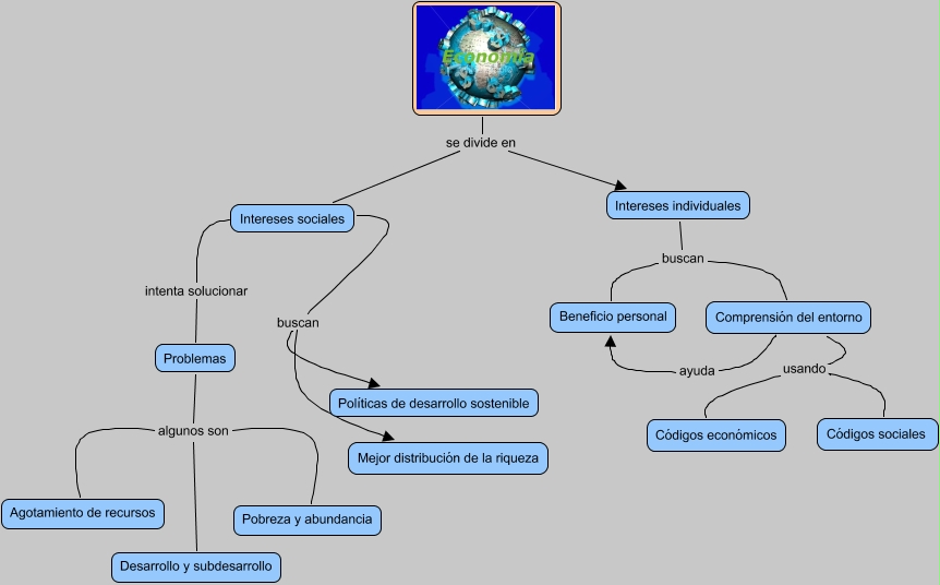 Este Cmap, tiene información relacionada con: Académico Josué (olvidé contraseña), se divide en Intereses individuales, Comprensión del entorno usando Códigos sociales, Problemas algunos son Pobreza y abundancia, Intereses sociales buscan Mejor distribución de la riqueza, Intereses individuales buscan Beneficio personal, Intereses sociales intenta solucionar Problemas, Problemas algunos son Desarrollo y subdesarrollo, Intereses individuales buscan Comprensión del entorno, Comprensión del entorno usando Códigos económicos, Comprensión del entorno ayuda Beneficio personal, se divide en Intereses sociales, Problemas algunos son Agotamiento de recursos, Intereses sociales buscan Políticas de desarrollo sostenible