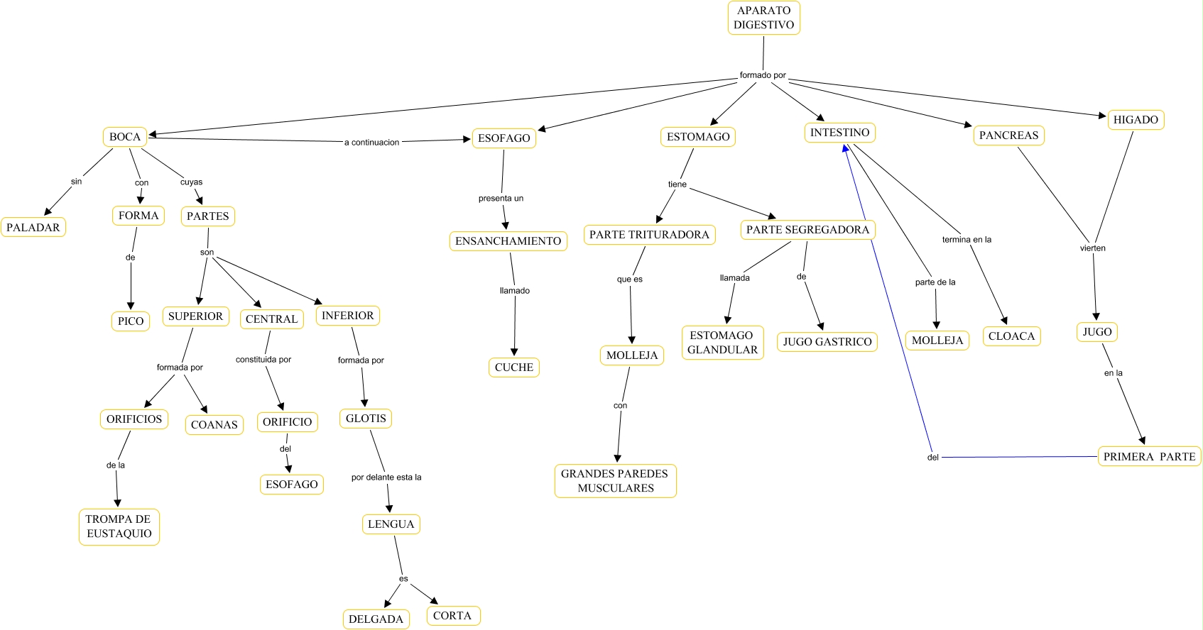 This Concept Map, created with IHMC CmapTools, has information related to: aparato digestivo, SUPERIOR formada por ORIFICIOS, LENGUA es DELGADA, APARATO DIGESTIVO formado por ESOFAGO, JUGO en la PRIMERA PARTE, ORIFICIO del ESOFAGO, PARTES son INFERIOR, PARTE SEGREGADORA llamada ESTOMAGO GLANDULAR, PARTES son CENTRAL, APARATO DIGESTIVO formado por BOCA, APARATO DIGESTIVO formado por ESTOMAGO, PANCREAS vierten JUGO, PARTE SEGREGADORA de JUGO GASTRICO, BOCA con FORMA, APARATO DIGESTIVO formado por INTESTINO, GLOTIS por delante esta la LENGUA, PARTE TRITURADORA que es MOLLEJA, BOCA a continuacion ESOFAGO, CENTRAL constituida por ORIFICIO, APARATO DIGESTIVO formado por HIGADO, LENGUA es CORTA