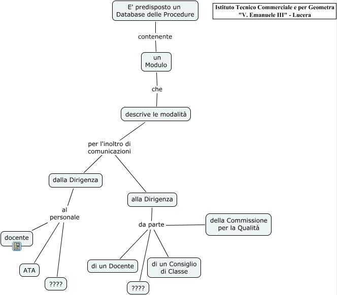 This Concept Map, created with IHMC CmapTools, has information related to: Modulistica, un Modulo contenente E' predisposto un Database delle Procedure, alla Dirigenza da parte della Commissione per la Qualità, dalla Dirigenza al personale ????, un Modulo che descrive le modalità, alla Dirigenza da parte di un Consiglio di Classe, alla Dirigenza da parte di un Docente, descrive le modalità per l'inoltro di comunicazioni alla Dirigenza, dalla Dirigenza al personale docente, alla Dirigenza da parte ????, descrive le modalità per l'inoltro di comunicazioni dalla Dirigenza, dalla Dirigenza al personale ATA
