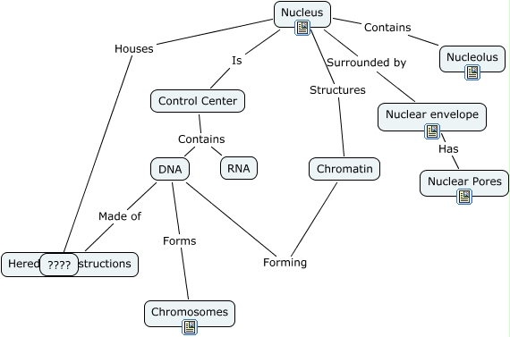 This Concept Map, created with IHMC CmapTools, has information related to: Nucleus RED, Nucleus Surrounded by Nuclear envelope, Nucleus Houses ????, Control Center Contains RNA, Chromatin Forming DNA, Nuclear envelope Has Nuclear Pores, DNA Made of Hereditary instructions, Nucleus Is Control Center, Control Center Contains DNA, DNA Forms Chromosomes, Nucleus Contains Nucleolus, Nucleus Structures Chromatin