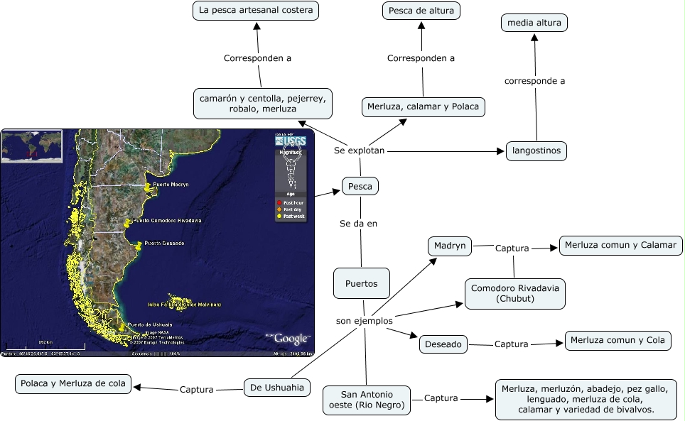 This Concept Map, created with IHMC CmapTools, has information related to: FLYT =) 4º1ra! (Pesca), camarón y centolla, pejerrey, robalo, merluza Corresponden a La pesca artesanal costera, langostinos corresponde a media altura, De Ushuahia Captura Polaca y Merluza de cola, Puertos son ejemplos Comodoro Rivadavia (Chubut), Pesca Se da en Puertos, San Antonio oeste (Rio Negro) Captura Merluza, merluzón, abadejo, pez gallo, lenguado, merluza de cola, calamar y variedad de bivalvos., Comodoro Rivadavia (Chubut) Captura Merluza comun y Calamar, Pesca Se explotan Merluza, calamar y Polaca, Pesca Se explotan langostinos, Puertos son ejemplos De Ushuahia, Pesca Se explotan camarón y centolla, pejerrey, robalo, merluza, Puertos son ejemplos Deseado, pesca ???? Pesca, Deseado Captura Merluza comun y Cola, Madryn Captura Merluza comun y Calamar, Puertos son ejemplos Madryn, Puertos son ejemplos San Antonio oeste (Rio Negro), Merluza, calamar y Polaca Corresponden a Pesca de altura
