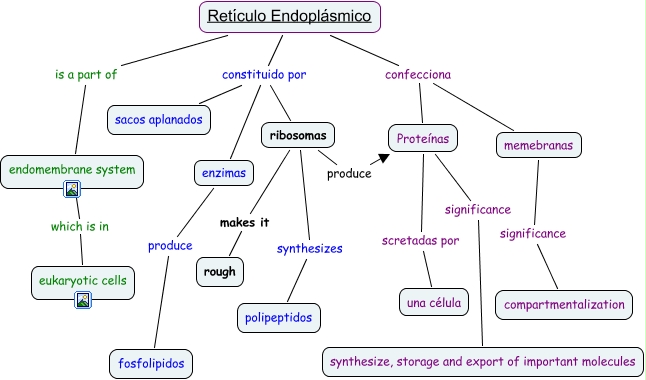 This Concept Map, created with IHMC CmapTools, has information related to: Reticulo, Retículo Endoplásmico confecciona Proteínas, Retículo Endoplásmico constituido por sacos aplanados, Proteínas scretadas por una célula, Retículo Endoplásmico constituido por enzimas, endomembrane system which is in eukaryotic cells, enzimas produce fosfolipidos, Proteínas significance synthesize, storage and export of important molecules, ribosomas makes it rough, ribosomas produce Proteínas, ribosomas synthesizes polipeptidos, Retículo Endoplásmico constituido por ribosomas, Retículo Endoplásmico confecciona memebranas, memebranas significance compartmentalization, Retículo Endoplásmico is a part of endomembrane system