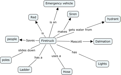 This Concept Map, created with IHMC CmapTools, has information related to: Fire Truck, Firetruck gets water from hydrant, Firetruck Saves people, Firetruck has Lights, Firetruck uses a Hose, Firetruck has a Ladder, Firetruck Mascott Dalmation, Firetruck is Red, Firetruck is an Emergency vehicle, Firetruck slides down poles, Firetruck makes Siren