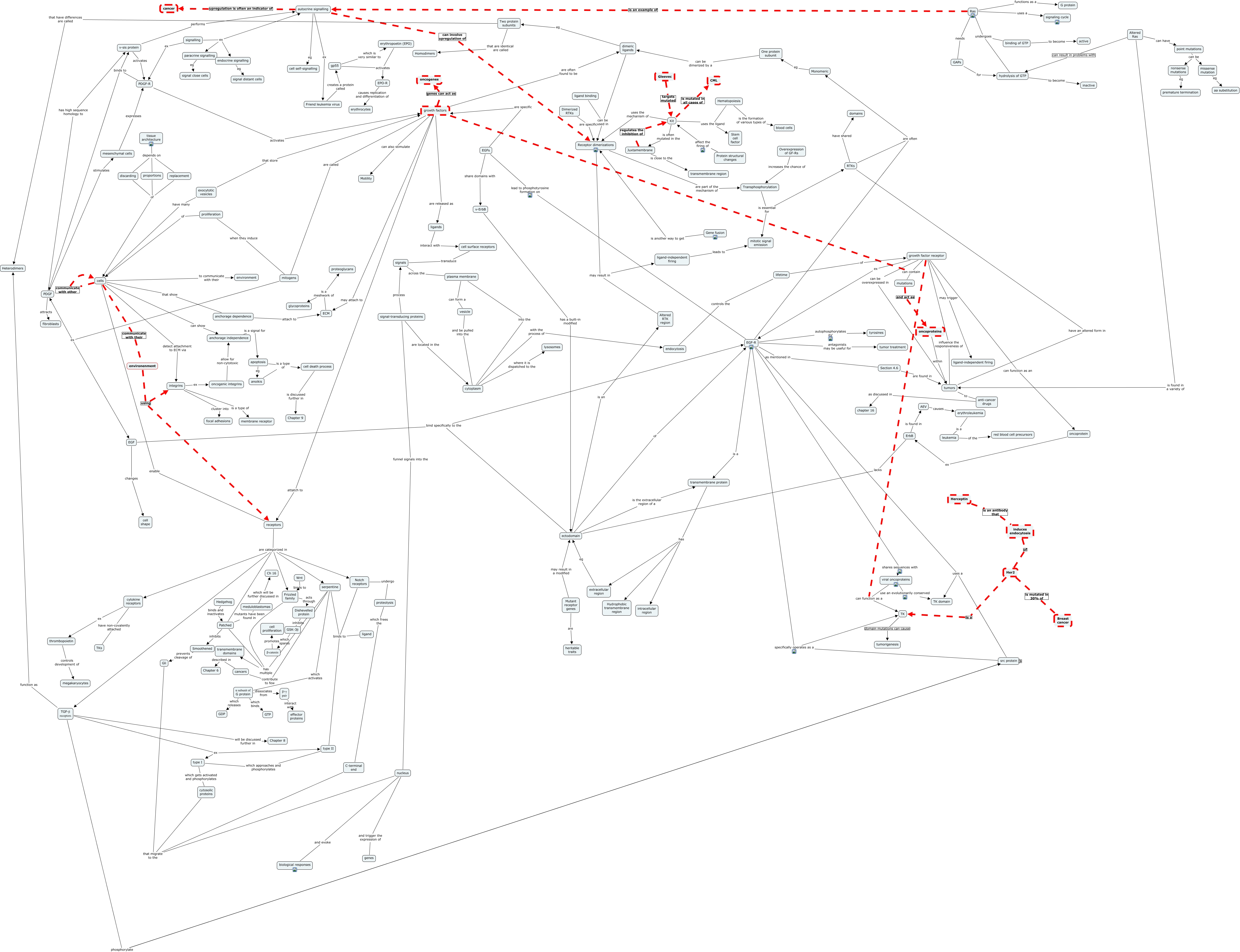 This Concept Map, created with IHMC CmapTools, has information related to: chapter 5 merged revised, paracrine signalling eg signal close cells, growth factors can also stimulate Motility, tissue architecture depends on discarding, Dishevelled protein inhibits GSK-3β, Her2 is a TK, growth factor receptor can function as a TK, Altered Ras is found in a variety of tumors, anchorage dependence attach to ECM, signal-transducing proteins funnel signals into the nucleus, Protein structural changes affect the firing of Kit, Hematopoiesis is the formation of various types of blood cells, EGF bind specifically to the EGF-R, growth factors can contain mutations, kinase eg transferer of phosphate group, TGF-β receptors phosphorylate threonine, EGF-R as mentioned in Section 4.6, autocrine signalling eg cell self-signalling, induces endocytosis of Her2, GAPs for hydrolysis of GTP, serpentine contribute to few cancers
