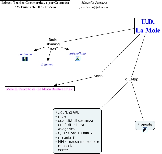 This Concept Map, created with IHMC CmapTools, has information related to: Mole - Unità Didattica, U.D. La Mole la CMap Proposta, U.D. La Mole Brain Storming "mole" ..in bocca, U.D. La Mole Brain Storming "mole" di lavoro, U.D. La Mole la CMap PER INIZIARE - mole - quantità di sostanza - unità di misura - Avogadro - 6, 023 per 10 alla 23 - materia ? - MM - massa molecolare - molecola - dente, U.D. La Mole Brain Storming "mole" antoneliana, U.D. La Mole video Mole IL Concetto di - La Massa Relativa 10'.avi