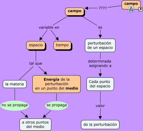 This Concept Map, created with IHMC CmapTools, has information related to: MAPA A ONDA_CAMPO, la materia no se propaga a otros puntos del medio, campo variable en tiempo, Energía de la perturbación en un punto del medio se propaga a otros puntos del medio, campo variable en espacio, espacio tal que Energía de la perturbación en un punto del medio, perturbación de un espacio determinada asignando a Cada punto del espacio, Cada punto del espacio valor de la perturbación, espacio tal que la materia, campo es perturbación de un espacio, campo ???? campo