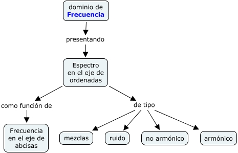 This Concept Map, created with IHMC CmapTools, has information related to: sonido_dominioFrec, Espectro en el eje de ordenadas de tipo mezclas, dominio de Frecuencia presentando Espectro en el eje de ordenadas, Espectro en el eje de ordenadas de tipo no armónico, Espectro en el eje de ordenadas de tipo armónico, Espectro en el eje de ordenadas como función de Frecuencia en el eje de abcisas, Espectro en el eje de ordenadas de tipo ruido
