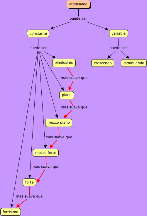 Este Cmap, tiene información relacionada con: MAPA B MUSICA_INTENSIDAD, forte mas suave que fortisimo, constante puede ser fortisimo, variable puede ser crescendo, constante puede ser piano, variable puede ser diminuendo, intensidad puede ser variable, constante puede ser pianissimo, mezzo piano mas suave que mezzo forte, constante puede ser mezzo piano, pianissimo mas suave que piano, piano mas suave que mezzo piano, constante puede ser forte, constante puede ser mezzo forte, mezzo forte mas suave que forte, intensidad puede ser constante