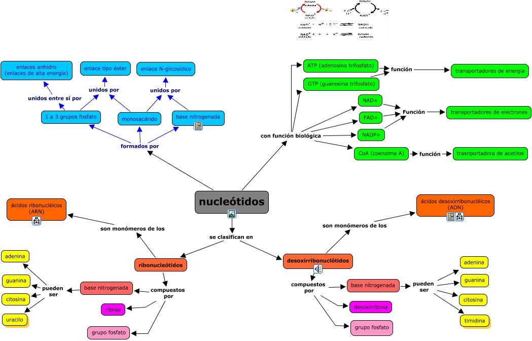 This Concept Map, created with IHMC CmapTools, has information related to: nucleótidos, base nitrogenada pueden ser adenina, nucleótidos formados por base nitrogenada, base nitrogenada pueden ser citosina, nucleótidos se clasifican en ribonucleótidos, FAD+ Función transportadores de electrones, desoxirribonuclótidos compuestos por desoxirribosa, nucleótidos con función biológica GTP (guanosina trifosfato), NAD+ Función transportadores de electrones, nucleótidos con función biológica NADP+, CoA (coenzima A) función trasnportadora de acetilos, base nitrogenada unidos por enlace N-glicosídico, desoxirribonuclótidos son monómeros de los ácidos desoxirribonucléicos (ADN), ribonucleótidos compuestos por ribosa, ribonucleótidos son monómeros de los ácidos ribonucléicos (ARN), nucleótidos se clasifican en desoxirribonuclótidos, base nitrogenada pueden ser timidina, ATP (adenosina trifosfato) función transportadores de energía, nucleótidos con función biológica FAD+, nucleótidos con función biológica CoA (coenzima A), base nitrogenada pueden ser adenina