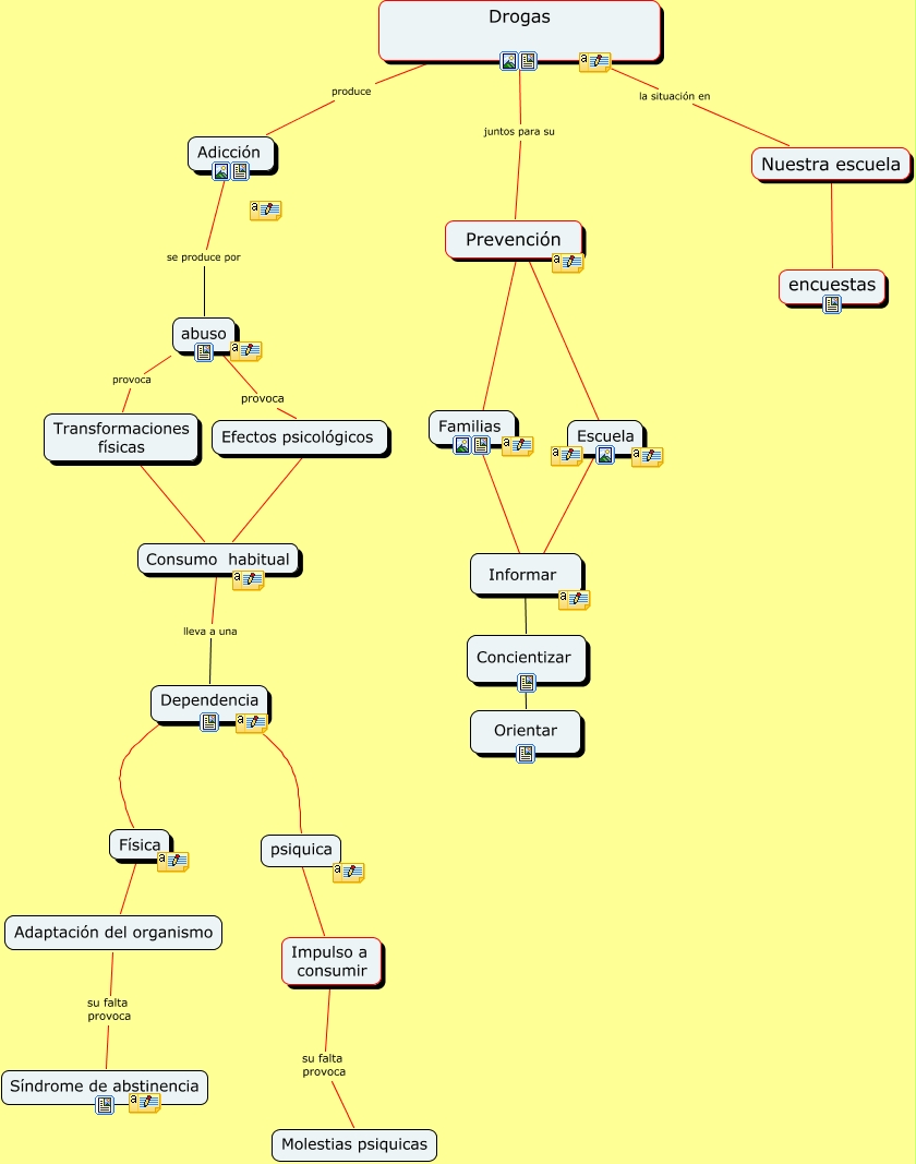 Este mapa conceptual tiene información relacionada a: droga ozan, Adicción se produce por abuso, Física ???? Adaptación del organismo, Prevención ???? Familias, Impulso a consumir su falta provoca Molestias psiquicas, Concientizar ???? Orientar, Nuestra escuela ???? encuestas, Drogas la situación en Nuestra escuela, Escuela ???? Informar, Dependencia ???? psiquica, Prevención ???? Escuela