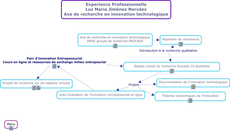 Este mapa conceptual tiene información relacionada a: Axe de recherche innovation technologique, Auto-évaluation de l'innovation entrepeneurial en ligne Parc d'innovation Entrepeneurial Cours en ligne et ressources de exchange milieu entrepeurial Projets de recherche sur les espaces virtuels, Espace virtuel de recherche Groupes 16 étudiants Projets Documentation de l'innovation technologique, Espace virtuel de recherche Groupes 16 étudiants Projets Théories económiques de l'innovation, Axe de recherche en innovation technologique Affilié groupe de recherche PROCREA ???? Pépinièrie de chercheurs, Auto-évaluation de l'innovation entrepeneurial en ligne Parc d'innovation Entrepeneurial Cours en ligne et ressources de exchange milieu entrepeurial Espace virtuel de recherche Groupes 16 étudiants, Espace virtuel de recherche Groupes 16 étudiants Projets Auto-évaluation de l'innovation entrepeneurial en ligne, Pépinièrie de chercheurs Introduction à la recherche qualitative Espace virtuel de recherche Groupes 16 étudiants