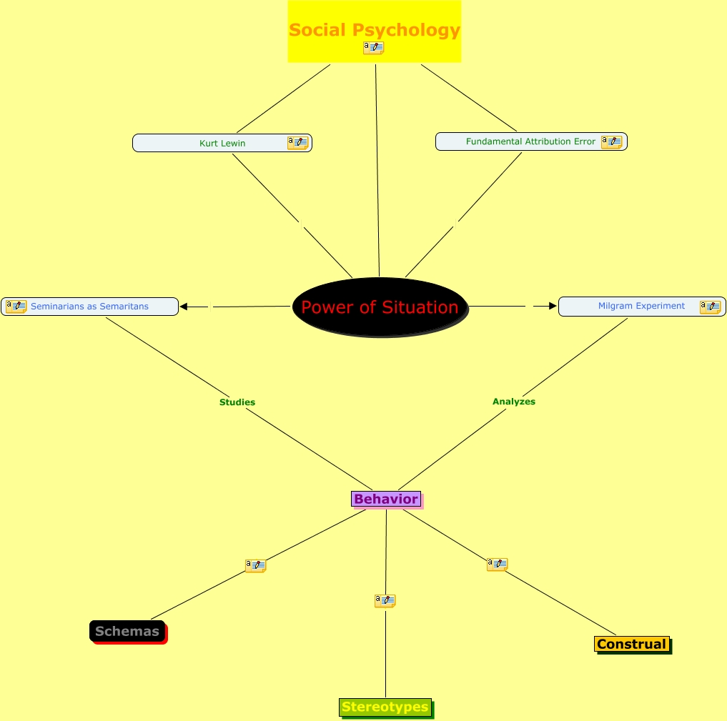 This Concept Map, created with IHMC CmapTools, has information related to: CMAP_2, Power of Situation Seminarians as Semaritans, Kurt Lewin Social Psychology Fundamental Attribution Error, Behavior Construal, Fundamental Attribution Error Power of Situation, Kurt Lewin Social Psychology Power of Situation, Behavior Schemas, Milgram Experiment Analyzes Behavior, Power of Situation Milgram Experiment, Kurt Lewin Power of Situation, Behavior Stereotypes, Seminarians as Semaritans Studies Behavior