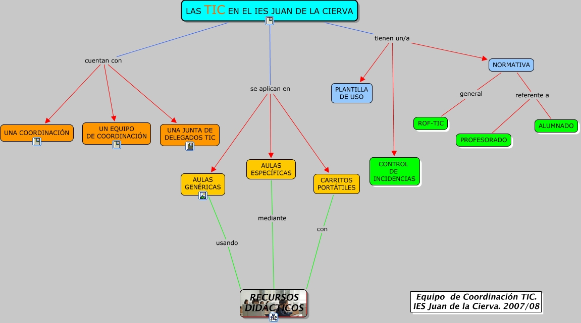Este mapa conceptual tiene información relacionada a: index, LAS TIC EN EL IES JUAN DE LA CIERVA tienen un/a CONTROL DE INCIDENCIAS, LAS TIC EN EL IES JUAN DE LA CIERVA se aplican en CARRITOS PORTÁTILES, LAS TIC EN EL IES JUAN DE LA CIERVA cuentan con UN EQUIPO DE COORDINACIÓN, CARRITOS PORTÁTILES con RECURSOS DIDÁCTICOS, LAS TIC EN EL IES JUAN DE LA CIERVA se aplican en AULAS GENÉRICAS, NORMATIVA referente a ALUMNADO, AULAS GENÉRICAS usando RECURSOS DIDÁCTICOS, NORMATIVA general ROF-TIC, LAS TIC EN EL IES JUAN DE LA CIERVA tienen un/a NORMATIVA, LAS TIC EN EL IES JUAN DE LA CIERVA tienen un/a PLANTILLA DE USO, LAS TIC EN EL IES JUAN DE LA CIERVA cuentan con UNA COORDINACIÓN, LAS TIC EN EL IES JUAN DE LA CIERVA cuentan con UNA JUNTA DE DELEGADOS TIC, AULAS ESPECÍFICAS mediante RECURSOS DIDÁCTICOS, NORMATIVA referente a PROFESORADO, LAS TIC EN EL IES JUAN DE LA CIERVA se aplican en AULAS ESPECÍFICAS