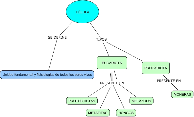 Este mapa conceptual tiene información relacionada a: celula1, EUCARIOTA METAFITAS, CÉLULA SE DEFINE Unidad fundamental y fisisiológica de todos los seres vivos, CÉLULA TIPOS PROCARIOTA, EUCARIOTA METAZOOS, PROCARIOTA PRESENTE EN MONERAS, EUCARIOTA PRESENTE EN HONGOS, CÉLULA TIPOS EUCARIOTA, EUCARIOTA PROTOCTISTAS