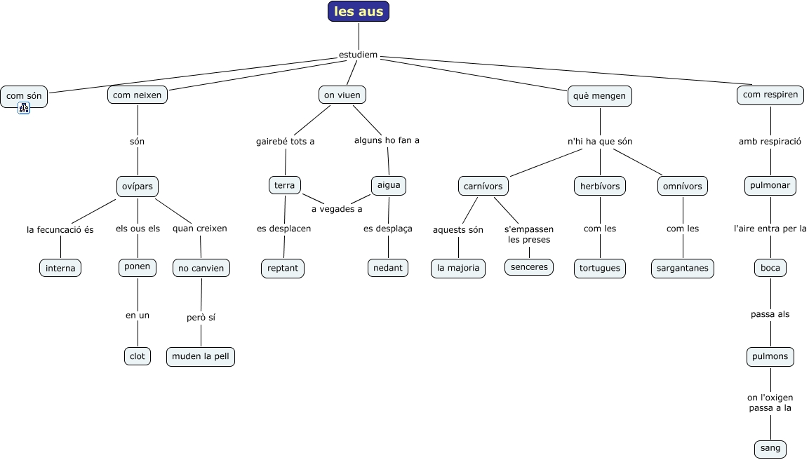aus_2, herbívors com les tortugues, què mengen n'hi ha que són carnívors, ovípars els ous els ponen, les aus estudiem com neixen, pulmons on l'oxigen passa a la sang, les aus estudiem què mengen, carnívors s'empassen les preses senceres, què mengen n'hi ha que són omnívors, terra a vegades a aigua, omnívors com les sargantanes