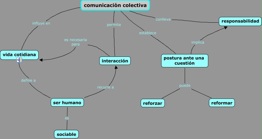 Este Cmap, tiene información relacionada con: académico-anai, ser humano es sociable, vida cotidiana define a ser humano, comunicación colectiva establece postura ante una cuestión, comunicación colectiva influye en vida cotidiana, comunicación colectiva permite interacción, ser humano recurre a interacción, postura ante una cuestión implica responsabilidad, interacción es necesaria para vida cotidiana, postura ante una cuestión puede reformar, postura ante una cuestión puede reforzar