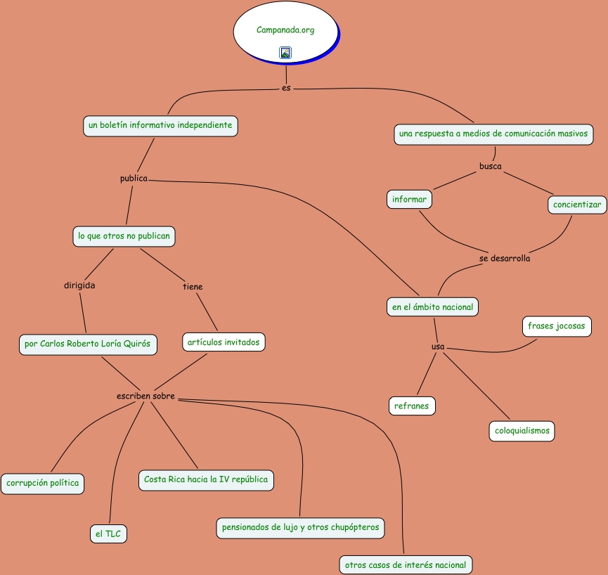 Este Cmap, tiene información relacionada con: Campanada.org, en el ámbito nacional usa refranes, informar se desarrolla en el ámbito nacional, en el ámbito nacional usa coloquialismos, artículos invitados escriben sobre otros casos de interés nacional, en el ámbito nacional usa frases jocosas, un boletín informativo independiente publica lo que otros no publican, por Carlos Roberto Loría Quirós escriben sobre pensionados de lujo y otros chupópteros, una respuesta a medios de comunicación masivos busca concientizar, Campanada.org es una respuesta a medios de comunicación masivos, por Carlos Roberto Loría Quirós escriben sobre el TLC, por Carlos Roberto Loría Quirós escriben sobre corrupción política, concientizar se desarrolla en el ámbito nacional, artículos invitados escriben sobre Costa Rica hacia la IV república, lo que otros no publican tiene artículos invitados, Campanada.org es un boletín informativo independiente, artículos invitados escriben sobre el TLC, en el ámbito nacional publica lo que otros no publican, por Carlos Roberto Loría Quirós escriben sobre Costa Rica hacia la IV república, artículos invitados escriben sobre pensionados de lujo y otros chupópteros, por Carlos Roberto Loría Quirós escriben sobre otros casos de interés nacional