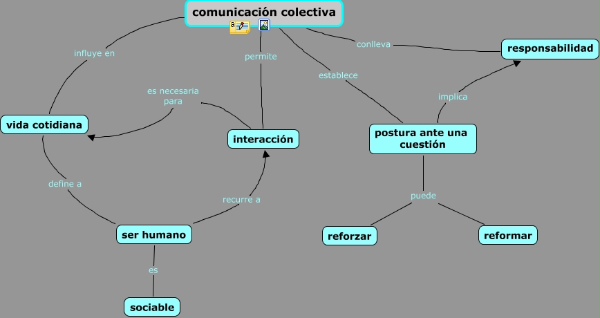 Este Cmap, tiene información relacionada con: académico,tarea2-anai, ser humano es sociable, vida cotidiana define a ser humano, comunicación colectiva establece postura ante una cuestión, comunicación colectiva influye en vida cotidiana, comunicación colectiva permite interacción, ser humano recurre a interacción, postura ante una cuestión implica responsabilidad, interacción es necesaria para vida cotidiana, postura ante una cuestión puede reformar, postura ante una cuestión puede reforzar