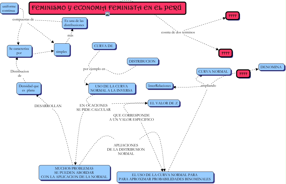 Este Cmap, tiene información relacionada con: MapasCoceptuales, FEMINISMO Y ECONOMIA FEMINISTA EN EL PERÚ cosnta de dos terminos ????, uniforme continua compuestas de simples, MUCHOS PROBLEMAS SE PUEDEN ABORDAR CON LA APLICACION DE LA NORMAL APLIACIONES DE LA DISTRIBUSION NORMAL EL USO DE LA CURVA NORMAL PARA PARA APROXIMAR PROBABILIDADES BINOMINALES, Densidad que es plana Distribucion de Se caracteriza por, uniforme continua compuestas de Se caracteriza por, EL USO DE LA CURVA NORMAL PARA PARA APROXIMAR PROBABILIDADES BINOMINALES ampliando DENOMINA, simples mas Es una de las distribusiones, EL USO DE LA CURVA NORMAL PARA PARA APROXIMAR PROBABILIDADES BINOMINALES ampliando InterRelaciones, USO DE LA CURVA NORMAL A LA INVERSA EN OCACIONES SE PIDE CALCULAR EL VALOR DE Z, Es una de las distribusiones compuestas de Se caracteriza por, EL VALOR DE Z QUE CORRESPONDE A UN VALOR ESPECIFICO EL USO DE LA CURVA NORMAL PARA PARA APROXIMAR PROBABILIDADES BINOMINALES, DISTRIBUCION por ejemplo en USO DE LA CURVA NORMAL A LA INVERSA, USO DE LA CURVA NORMAL A LA INVERSA EN OCACIONES SE PIDE CALCULAR MUCHOS PROBLEMAS SE PUEDEN ABORDAR CON LA APLICACION DE LA NORMAL, MUCHOS PROBLEMAS SE PUEDEN ABORDAR CON LA APLICACION DE LA NORMAL DESARROLLAN Densidad que es plana, Se caracteriza por simples, EL USO DE LA CURVA NORMAL PARA PARA APROXIMAR PROBABILIDADES BINOMINALES ampliando CURVA NORMAL, CURVA DE por ejemplo en USO DE LA CURVA NORMAL A LA INVERSA, Es una de las distribusiones compuestas de simples, FEMINISMO Y ECONOMIA FEMINISTA EN EL PERÚ cosnta de dos terminos ????