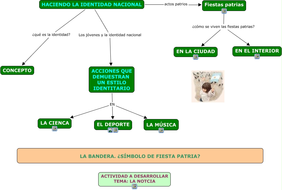 Este mapa conceptual tiene información relacionada a: IDENTIDAD NACIONAL, HACIENDO LA IDENTIDAD NACIONAL actos patrios Fiestas patrias, ACCIONES QUE DEMUESTRAN UN ESTILO IDENTITARIO EN LA MÚSICA, ACCIONES QUE DEMUESTRAN UN ESTILO IDENTITARIO EN EL DEPORTE, HACIENDO LA IDENTIDAD NACIONAL Los jóvenes y la identidad nacional ACCIONES QUE DEMUESTRAN UN ESTILO IDENTITARIO, ACCIONES QUE DEMUESTRAN UN ESTILO IDENTITARIO EN LA CIENCA, HACIENDO LA IDENTIDAD NACIONAL ¿qué es la identidad? CONCEPTO, Fiestas patrias ¿cómo se viven las fiestas patrias? EN EL INTERIOR, Fiestas patrias ¿cómo se viven las fiestas patrias? EN LA CIUDAD