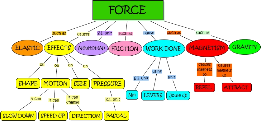 This Concept Map, created with IHMC CmapTools, has information related to: 1A_Emmeline Tjong (9)_Force, Pressure and Work_1, MOTION it can SLOW DOWN, FORCE cause WORK DONE, EFFECTS on SIZE, PRESSURE S.I. unit PASCAL, FORCE such as GRAVITY, FORCE S.I. unit Newton(N), EFFECTS on MOTION, MOTION it can SPEED UP, FORCE such as FRICTION, FORCE causes EFFECTS, EFFECTS on PRESSURE, MOTION it can change DIRECTION, MAGNETISM causes magnets to REPEL, WORK DONE S.I. unit Nm, WORK DONE unit Joule (J), FORCE such as ELASTIC, MAGNETISM causes magnets to ATTRACT, FORCE such as MAGNETISM, WORK DONE using LEVERS, EFFECTS on SHAPE