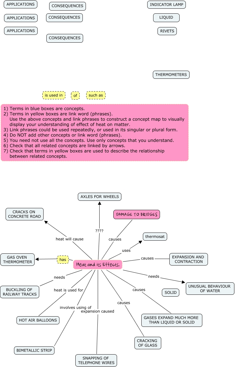 This Concept Map, created with IHMC CmapTools, has information related to: Cmap ( Heat and its Effects ), Heat and its Effects. ???? AXLES FOR WHEELS, Heat and its Effects. causes GASES EXPAND MUCH MORE THAN LIQUID OR SOLID, Heat and its Effects. has GAS OVEN THERMOMETER, Heat and its Effects. heat is used for HOT AIR BALLOONS, Heat and its Effects. needs UNUSUAL BEHAVIOUR OF WATER, Heat and its Effects. uses thermosat, Heat and its Effects. heat will cause CRACKS ON CONCRETE ROAD, DAMAGE TO BRIDGES causes Heat and its Effects., Heat and its Effects. needs BUCKLING OF RAILWAY TRACKS, Heat and its Effects. involves using of BIMETALLIC STRIP, Heat and its Effects. causes CRACKING OF GLASS, Heat and its Effects. expansion caused SNAPPING OF TELEPHONE WIRES, Heat and its Effects. causes ????