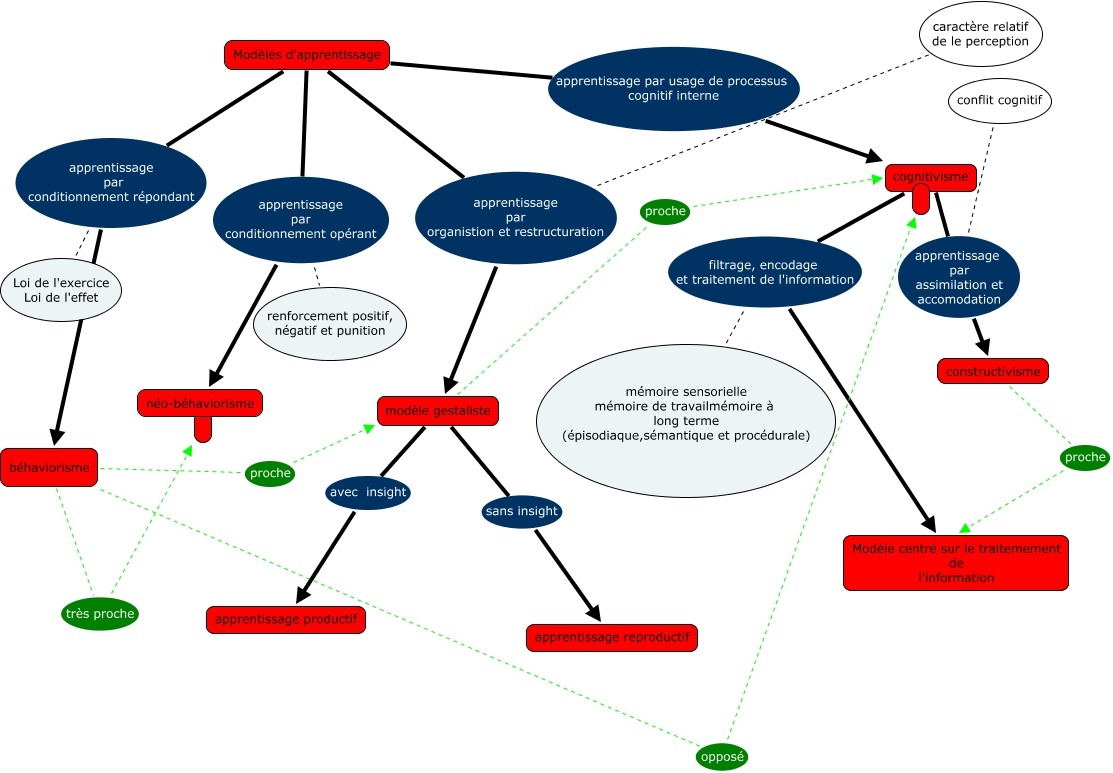 Cette carte conceptuelle, cree avec IHMC CmapTools, contient des informations liees a : cmapact2, cognitivisme apprentissage par assimilation et accomodation constructivisme, Modèles d'apprentissage apprentissage par conditionnement opérant néo-béhaviorisme, cognitivisme apprentissage par assimilation et accomodation conflit cognitif, modèle gestaliste avec insight apprentissage productif, cognitivisme filtrage, encodage et traitement de l'information Modèle centré sur le traitemement de l'information, béhaviorisme opposé, Modèles d'apprentissage apprentissage par conditionnement répondant Loi de l'exercice Loi de l'effet, béhaviorisme proche modèle gestaliste, Modèles d'apprentissage apprentissage par conditionnement répondant béhaviorisme, Modèles d'apprentissage apprentissage par usage de processus cognitif interne cognitivisme, constructivisme proche Modèle centré sur le traitemement de l'information, modèle gestaliste sans insight apprentissage reproductif, Modèles d'apprentissage apprentissage par conditionnement opérant renforcement positif, négatif et punition, cognitivisme filtrage, encodage et traitement de l'information mémoire sensorielle mémoire de travailmémoire à long terme (épisodiaque,sémantique et procédurale), béhaviorisme très proche, Modèles d'apprentissage apprentissage par organistion et restructuration modèle gestaliste, Modèles d'apprentissage apprentissage par organistion et restructuration caractère relatif de le perception, modèle gestaliste proche cognitivisme