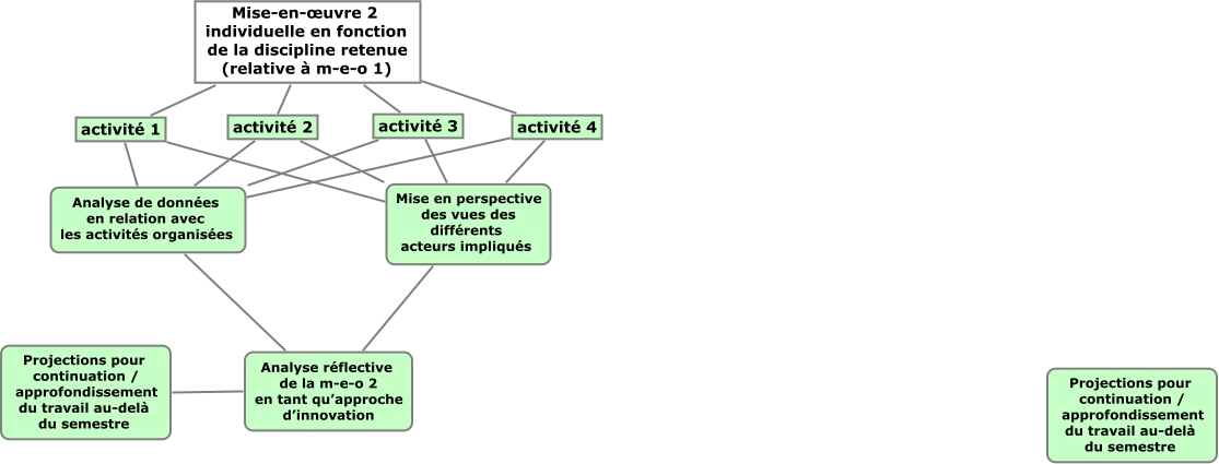 This Concept Map, created with IHMC CmapTools, has information related to: PIP_meo2, activité 3 Analyse de données en relation avec les activités organisées, activité 2 Analyse de données en relation avec les activités organisées, Analyse de données en relation avec les activités organisées Analyse réflective de la m-e-o 2 en tant qu’approche d’innovation, Mise-en-œuvre 2 individuelle en fonction de la discipline retenue (relative à m-e-o 1) activité 3, activité 4 Analyse de données en relation avec les activités organisées, activité 1 Mise en perspective des vues des différents acteurs impliqués, activité 1 Analyse de données en relation avec les activités organisées, activité 3 Mise en perspective des vues des différents acteurs impliqués, Projections pour continuation / approfondissement du travail au-delà du semestre Analyse réflective de la m-e-o 2 en tant qu’approche d’innovation, Mise-en-œuvre 2 individuelle en fonction de la discipline retenue (relative à m-e-o 1) activité 1, Mise-en-œuvre 2 individuelle en fonction de la discipline retenue (relative à m-e-o 1) activité 2, activité 2 Mise en perspective des vues des différents acteurs impliqués, activité 4 Mise en perspective des vues des différents acteurs impliqués, Mise-en-œuvre 2 individuelle en fonction de la discipline retenue (relative à m-e-o 1) activité 4, Mise en perspective des vues des différents acteurs impliqués Analyse réflective de la m-e-o 2 en tant qu’approche d’innovation