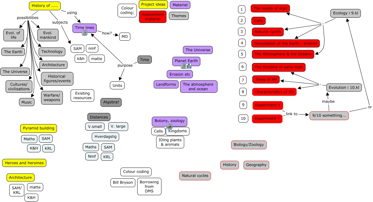 This Concept Map, created with IHMC CmapTools, has information related to: Projects and resources, History of ..... possibilities Technology, History of ..... possibilities Warfare/ weapons, 9/10 something... maybe Evolution i 10.kl, 9/10 something... or Ecology i 9.kl, History of ..... possibilities Historical figures/events, History of ..... possibilities Music, History of ..... using Time lines, Time purpose Units, History of ..... possibilities Cultures/ civilisations, History of ..... possibilities The Universe, History of ..... possibilities Evol. of life, Ecology i 9.kl . Natural cycles, Ecology i 9.kl . The Atmosphere & the Oceans, Experiment X link to 9/10 something..., Time purpose Time lines, History of ..... subjects SAM, Evolution i 10.kl . Trees of life, Time lines how? MO, Experiment Y link to 9/10 something..., Evolution i 10.kl . The timeline of early man