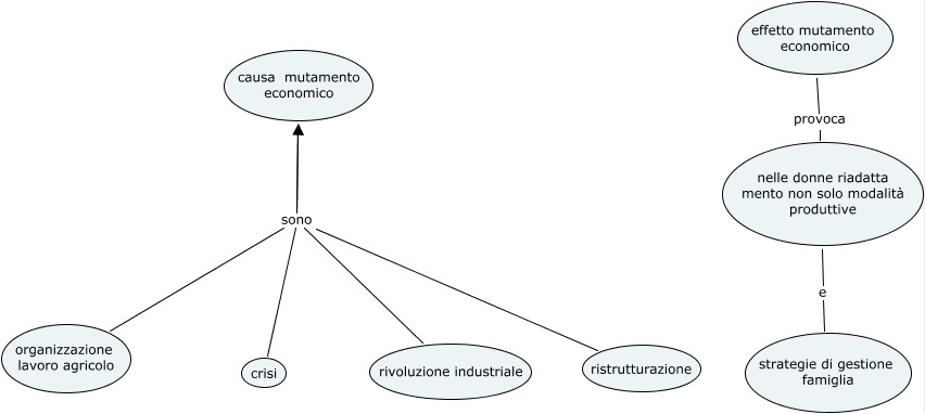 Questa Cmap, creata con IHMC CmapTools, contiene informazioni relative a: Senza titolo 1, causa mutamento economico sono organizzazione lavoro agricolo, causa mutamento economico sono crisi, effetto mutamento economico provoca nelle donne riadatta mento non solo modalità produttive, causa mutamento economico sono rivoluzione industriale, causa mutamento economico sono ristrutturazione, nelle donne riadatta mento non solo modalità produttive e strategie di gestione famiglia