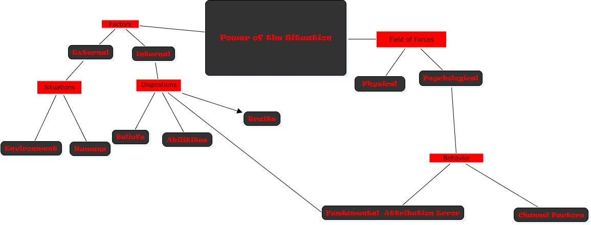 This Concept Map, created with IHMC CmapTools, has information related to: Power of the situation, Power of the Situation Factors External, Power of the Situation Field of Forces Psychological, Psychological Behavior Channel Factors, External Situations Environment, Internal Dispostions Abilitites, Internal Dispostions Beliefs, Power of the Situation Factors Internal, Internal Dispostions Fundamental Attribution Error, Internal Dispostions Traits, External Situations Humans, Power of the Situation Field of Forces Physical, Psychological Behavior Fundamental Attribution Error