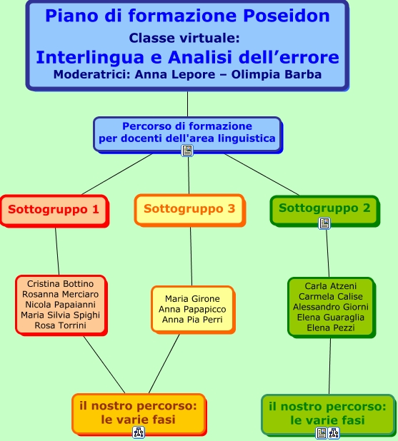 Questa Cmap, creata con IHMC CmapTools, contiene informazioni relative a: Copertina Progetto1, Sottogruppo 1 Cristina Bottino Rosanna Merciaro Nicola Papaianni Maria Silvia Spighi Rosa Torrini il nostro percorso: le varie fasi, Piano di formazione Poseidon Classe virtuale: Interlingua e Analisi dell’errore Moderatrici: Anna Lepore – Olimpia Barba Percorso di formazione per docenti dell'area linguistica Sottogruppo 2, Sottogruppo 2 Carla Atzeni Carmela Calise Alessandro Giorni Elena Guaraglia Elena Pezzi il nostro percorso: le varie fasi, Sottogruppo 3 Maria Girone Anna Papapicco Anna Pia Perri il nostro percorso: le varie fasi, Piano di formazione Poseidon Classe virtuale: Interlingua e Analisi dell’errore Moderatrici: Anna Lepore – Olimpia Barba Percorso di formazione per docenti dell'area linguistica Sottogruppo 3, Piano di formazione Poseidon Classe virtuale: Interlingua e Analisi dell’errore Moderatrici: Anna Lepore – Olimpia Barba Percorso di formazione per docenti dell'area linguistica Sottogruppo 1