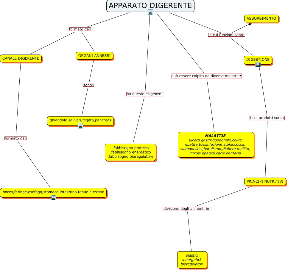Questa Cmap, creata con IHMC CmapTools, contiene informazioni relative a: apparato digerente jacopo e paolo, CANALE DIGERENTE formato da: bocca,faringe,esofago,stomaco,intesrtino tenue e crasso, APPARATO DIGERENTE le cui funzioni sono: ASSORBIMENTO, APPARATO DIGERENTE le cui funzioni sono: DIGESTIONE, PRINCIPI NUTRITIVI divisione degli alimenti in: .plastici .energetici .bioregolatori, DIGESTIONE i cui prodotti sono: PRINCIPI NUTRITIVI, ORGANI ANNESSI sono: ghiandole salivari,fegato,pancreas, APPARATO DIGERENTE formato da: CANALE DIGERENTE, APPARATO DIGERENTE ha queste esigenze: .fabbisogno proteico .fabbisogno energetico .fabbisogno bioregolatore, APPARATO DIGERENTE formato da: ORGANI ANNESSI, APPARATO DIGERENTE può essere colpita da diverse malattie: MALATTIE ulcera gastroduodenale,colite epatite,tossinfezione stafilococca, salmonellosi,botulismo,diabete mellito, cirrosi epatica,carie dentaria