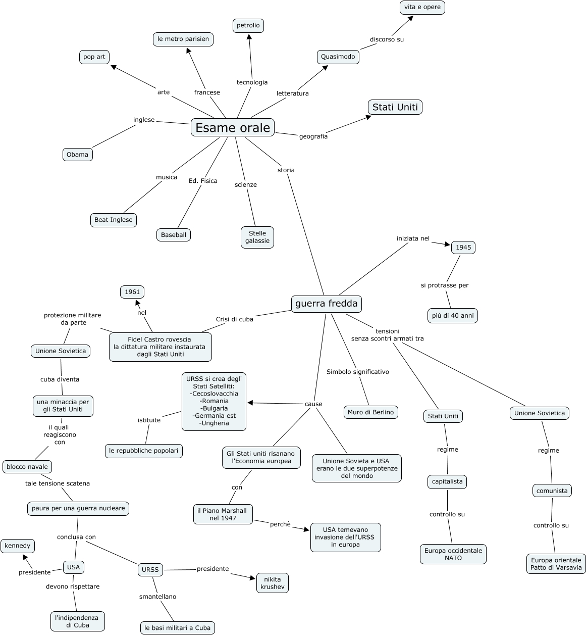 Questa Cmap, creata con IHMC CmapTools, contiene informazioni relative a: Mappa esame di Claudia, USA devono rispettare l'indipendenza di Cuba, Esame orale scienze Stelle galassie, paura per una guerra nucleare conclusa con USA, Esame orale inglese Obama, URSS smantellano le basi militari a Cuba, URSS si crea degli Stati Satelliti: -Cecoslovacchia -Romania -Bulgaria -Germania est -Ungheria istituite le repubbliche popolari, guerra fredda Simbolo significativo Muro di Berlino, Quasimodo discorso su vita e opere, capitalista controllo su Europa occidentale NATO, una minaccia per gli Stati Uniti il quali reagiscono con blocco navale, guerra fredda tensioni senza scontri armati tra Unione Sovietica, Fidel Castro rovescia la dittatura militare instaurata dagli Stati Uniti nel 1961, Esame orale letteratura Quasimodo, Esame orale musica Beat Inglese, Stati Uniti regime capitalista, URSS presidente nikita krushev, USA presidente kennedy, Esame orale storia guerra fredda, guerra fredda Crisi di cuba Fidel Castro rovescia la dittatura militare instaurata dagli Stati Uniti, guerra fredda cause Gli Stati uniti risanano l'Economia europea