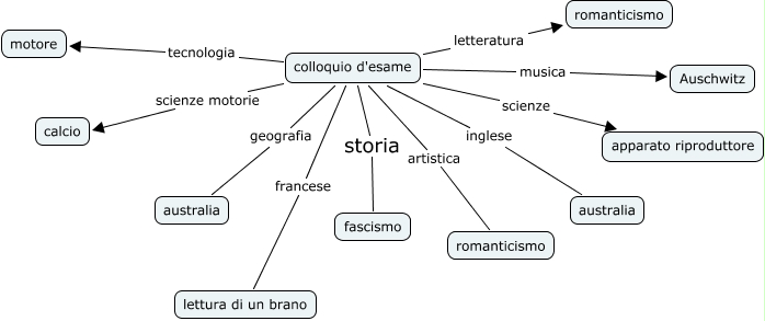 Questa Cmap, creata con IHMC CmapTools, contiene informazioni relative a: mappa concertuale domenico, colloquio d'esame scienze motorie calcio, colloquio d'esame musica Auschwitz, colloquio d'esame storia fascismo, colloquio d'esame geografia australia, colloquio d'esame francese lettura di un brano, colloquio d'esame letteratura romanticismo, colloquio d'esame inglese australia, colloquio d'esame scienze apparato riproduttore, colloquio d'esame artistica romanticismo, colloquio d'esame tecnologia motore