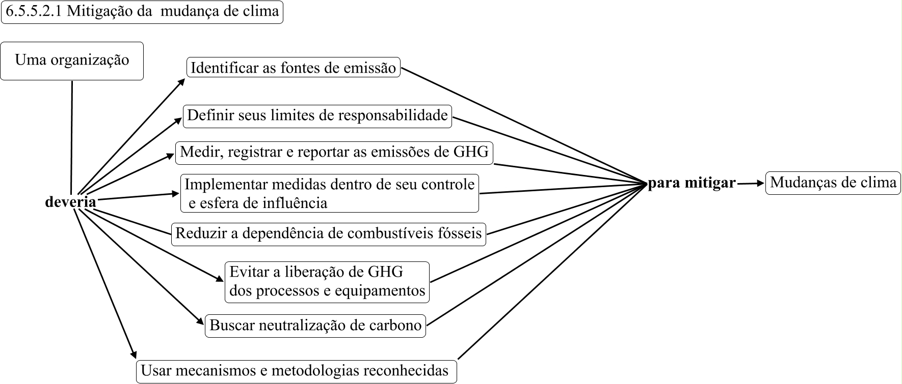 Esse mapa conceitual, produzido no IHMC CmapTools, tem a informação relacionada a: 6.5.5.2.1 Mitigação da mudança do clima, Uma organização deveria Medir, registrar e reportar as emissões de GHG, Definir seus limites de responsabilidade para mitigar Mudanças de clima, Uma organização deveria Reduzir a dependência de combustíveis fósseis, Reduzir a dependência de combustíveis fósseis para mitigar Mudanças de clima, Identificar as fontes de emissão para mitigar Mudanças de clima, Uma organização deveria Buscar neutralização de carbono, Evitar a liberação de GHG dos processos e equipamentos para mitigar Mudanças de clima, Uma organização deveria Definir seus limites de responsabilidade, Uma organização deveria Usar mecanismos e metodologias reconhecidas, Usar mecanismos e metodologias reconhecidas para mitigar Mudanças de clima, Buscar neutralização de carbono para mitigar Mudanças de clima, Uma organização deveria Implementar medidas dentro de seu controle e esfera de influência, Implementar medidas dentro de seu controle e esfera de influência para mitigar Mudanças de clima, Medir, registrar e reportar as emissões de GHG para mitigar Mudanças de clima, Uma organização deveria Identificar as fontes de emissão, Uma organização deveria Evitar a liberação de GHG dos processos e equipamentos
