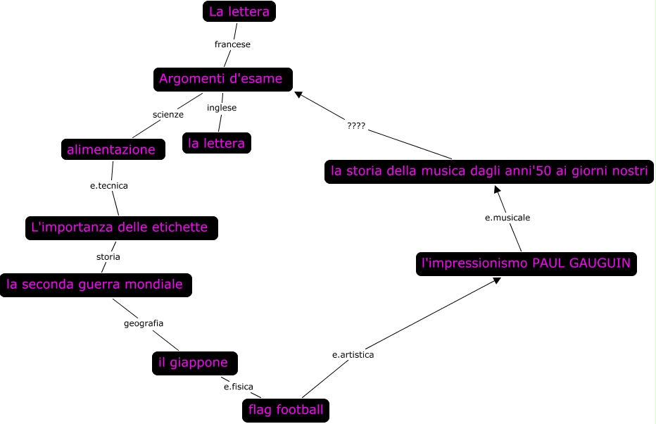Questa Cmap, creata con IHMC CmapTools, contiene informazioni relative a: mappa esame meryem, L'importanza delle etichette storia la seconda guerra mondiale, Argomenti d'esame inglese la lettera, alimentazione e.tecnica L'importanza delle etichette, la storia della musica dagli anni'50 ai giorni nostri ???? Argomenti d'esame, Argomenti d'esame scienze alimentazione, il giappone e.fisica flag football, la seconda guerra mondiale geografia il giappone, l'impressionismo PAUL GAUGUIN e.musicale la storia della musica dagli anni'50 ai giorni nostri, flag football e.artistica l'impressionismo PAUL GAUGUIN, La lettera francese Argomenti d'esame