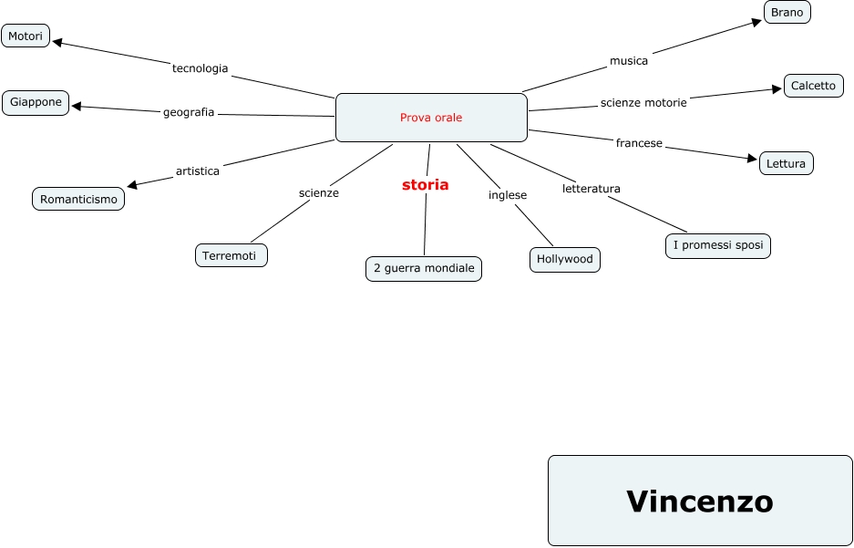 Questa Cmap, creata con IHMC CmapTools, contiene informazioni relative a: Vincenzo, Prova orale scienze Terremoti, Prova orale francese Lettura, Prova orale storia 2 guerra mondiale, Prova orale musica Brano, Prova orale inglese Hollywood, Prova orale tecnologia Motori, Prova orale artistica Romanticismo, Prova orale letteratura I promessi sposi, Prova orale scienze motorie Calcetto, Prova orale geografia Giappone