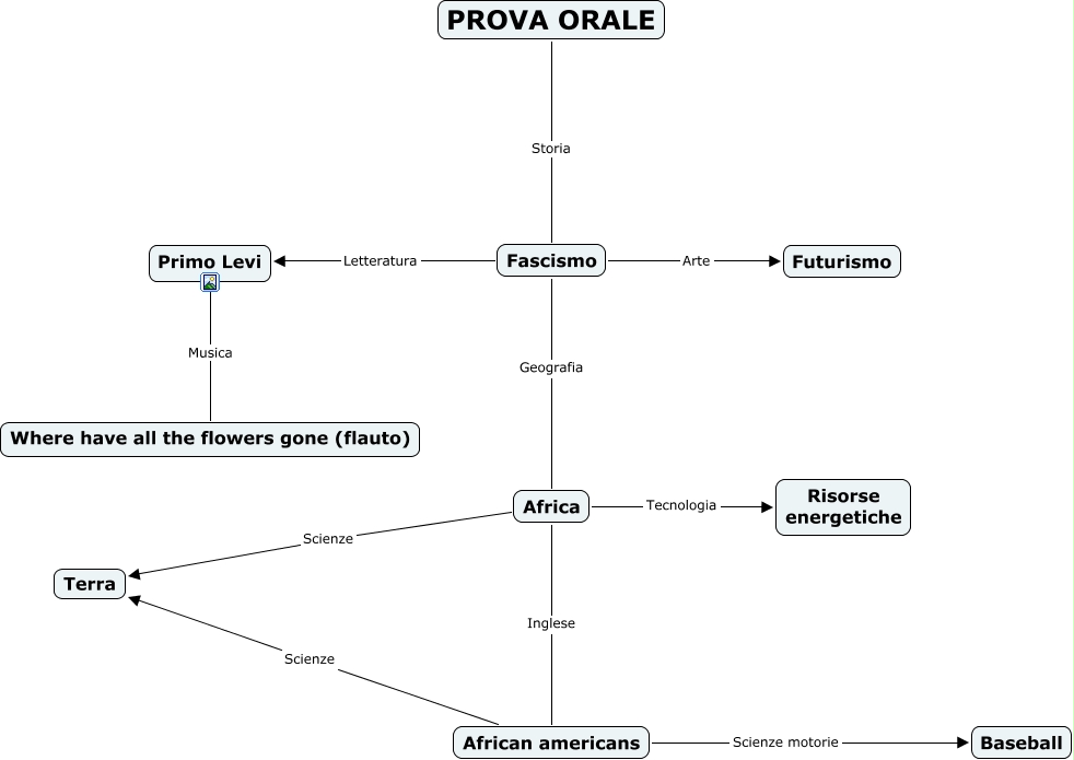 Questa Cmap, creata con IHMC CmapTools, contiene informazioni relative a: Mappa concettuale prova orale Luana, Fascismo Geografia Africa, PROVA ORALE Storia Fascismo, Africa Scienze Terra, Africa Tecnologia Risorse energetiche, Africa Inglese African americans, Primo Levi Musica Where have all the flowers gone (flauto), Fascismo Letteratura Primo Levi, African americans Scienze Terra, Fascismo Arte Futurismo, African americans Scienze motorie Baseball