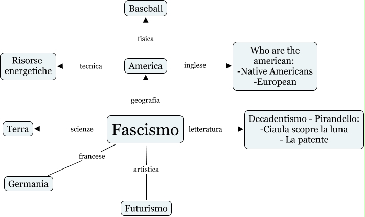 Questa Cmap, creata con IHMC CmapTools, contiene informazioni relative a: mappa concettuale dell'esame di roberta, America fisica Baseball, Fascismo francese Germania, Fascismo artistica Futurismo, America tecnica Risorse energetiche, Fascismo letteratura Decadentismo - Pirandello: -Ciaula scopre la luna - La patente, Fascismo scienze Terra, America inglese Who are the american: -Native Americans -European, Fascismo geografia America