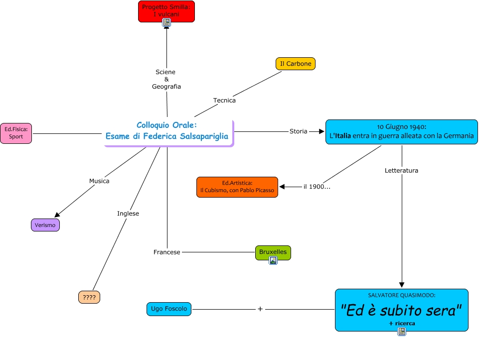 Questa Cmap, creata con IHMC CmapTools, contiene informazioni relative a: mappa esame GIUSTA federica, SALVATORE QUASIMODO: "Ed è subito sera" + ricerca + Ugo Foscolo, Colloquio Orale: Esame di Federica Salsapariglia Francese Bruxelles, 10 Giugno 1940: L'Italia entra in guerra alleata con la Germania Letteratura SALVATORE QUASIMODO: "Ed è subito sera" + ricerca, Colloquio Orale: Esame di Federica Salsapariglia Musica Verismo, Colloquio Orale: Esame di Federica Salsapariglia Storia 10 Giugno 1940: L'Italia entra in guerra alleata con la Germania, 10 Giugno 1940: L'Italia entra in guerra alleata con la Germania il 1900... Ed.Artistica: Il Cubismo, con Pablo Picasso, Colloquio Orale: Esame di Federica Salsapariglia Inglese ????, Ed.Fisica: Sport Colloquio Orale: Esame di Federica Salsapariglia, Colloquio Orale: Esame di Federica Salsapariglia Tecnica Il Carbone, Colloquio Orale: Esame di Federica Salsapariglia Sciene & Geografia Progetto Smilla: I vulcani