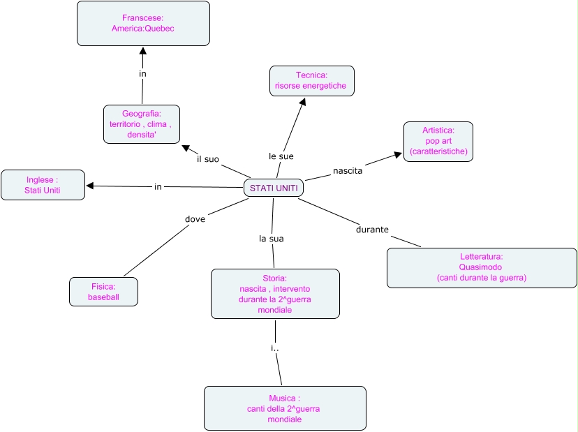 Questa Cmap, creata con IHMC CmapTools, contiene informazioni relative a: Mappa esame di Saida, STATI UNITI il suo Geografia: territorio , clima , densita', STATI UNITI le sue Tecnica: risorse energetiche, STATI UNITI nascita Artistica: pop art (caratteristiche), Geografia: territorio , clima , densita' in Franscese: America:Quebec, Storia: nascita , intervento durante la 2^guerra mondiale i.. Musica : canti della 2^guerra mondiale, STATI UNITI la sua Storia: nascita , intervento durante la 2^guerra mondiale, STATI UNITI in Inglese : Stati Uniti, STATI UNITI durante Letteratura: Quasimodo (canti durante la guerra), STATI UNITI dove Fisica: baseball