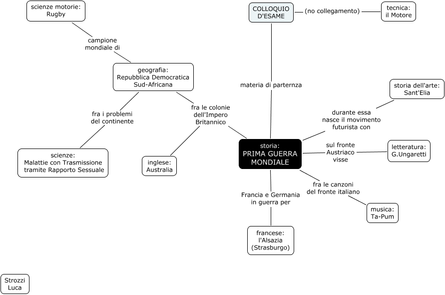 Questa Cmap, creata con IHMC CmapTools, contiene informazioni relative a: luca exam orale, geografia: Repubblica Democratica Sud-Africana campione mondiale di scienze motorie: Rugby, COLLOQUIO D'ESAME (no collegamento) tecnica: il Motore, storia: PRIMA GUERRA MONDIALE sul fronte Austriaco visse letteratura: G.Ungaretti, COLLOQUIO D'ESAME materia di parternza storia: PRIMA GUERRA MONDIALE, geografia: Repubblica Democratica Sud-Africana fra i problemi del continente scienze: Malattie con Trasmissione tramite Rapporto Sessuale, storia: PRIMA GUERRA MONDIALE Francia e Germania in guerra per francese: l'Alsazia (Strasburgo), storia: PRIMA GUERRA MONDIALE fra le colonie dell'Impero Britannico geografia: Repubblica Democratica Sud-Africana, storia: PRIMA GUERRA MONDIALE fra le colonie dell'Impero Britannico inglese: Australia, storia: PRIMA GUERRA MONDIALE durante essa nasce il movimento futurista con storia dell'arte: Sant'Elia, storia: PRIMA GUERRA MONDIALE fra le canzoni del fronte italiano musica: Ta-Pum