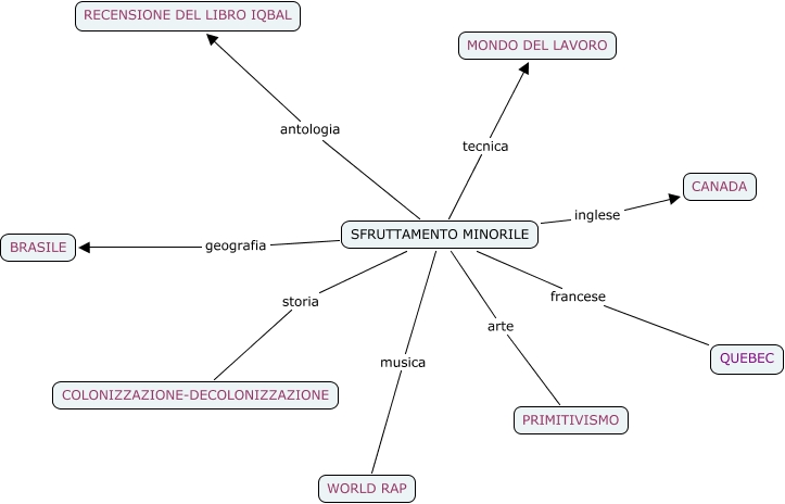 Questa Cmap, creata con IHMC CmapTools, contiene informazioni relative a: mappa esame katherin, SFRUTTAMENTO MINORILE tecnica MONDO DEL LAVORO, SFRUTTAMENTO MINORILE musica WORLD RAP, SFRUTTAMENTO MINORILE arte PRIMITIVISMO, SFRUTTAMENTO MINORILE geografia BRASILE, SFRUTTAMENTO MINORILE storia COLONIZZAZIONE-DECOLONIZZAZIONE, SFRUTTAMENTO MINORILE inglese CANADA, SFRUTTAMENTO MINORILE antologia RECENSIONE DEL LIBRO IQBAL, SFRUTTAMENTO MINORILE francese QUEBEC