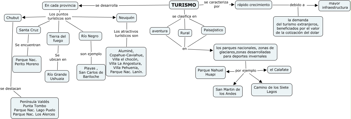 Este Cmap, tiene información relacionada con: turismo patagonia Kabala 4°1°, En cada provincia Los puntos turísticos son Tierra del fuego, los parques nacionales, zonas de glaciares,zonas desarrolladas para deportes invernales por ejemplo Camino de los Siete Lagos, TURISMO se caracteriza por rápido crecimiento, En cada provincia Los puntos turísticos son Neuquén, los parques nacionales, zonas de glaciares,zonas desarrolladas para deportes invernales por ejemplo el Calafate, TURISMO se desarrolla En cada provincia, Santa Cruz Se encuentran Parque Nac. Perito Moreno, Neuquén Los atractivos turísticos son Aluminé, Copahue-Caviahue, Villa el chocón, Villa La Angostura, Villa Pehuenia, Parque Nac. Lanín., aventura en los parques nacionales, zonas de glaciares,zonas desarrolladas para deportes invernales, En cada provincia Los puntos turísticos son Santa Cruz, En cada provincia Los puntos turísticos son Río Negro, rápido crecimiento debido a mayor infraestructura, Paisajistico en los parques nacionales, zonas de glaciares,zonas desarrolladas para deportes invernales, rápido crecimiento debido a la demanda del turismo extranjeros, beneficiados por el valor de la cotización del dolar, Río Negro son ejemplo Playas , San Carlos de Bariloche, En cada provincia Los puntos turísticos son Chubut, los parques nacionales, zonas de glaciares,zonas desarrolladas para deportes invernales por ejemplo San Martin de los Andes, TURISMO se clasifica en Rural, Chubut se destacan Península Valdés Punta Tombo Parque Nac. Lago Puelo Parque Nac. Los Alerces, TURISMO se clasifica en Paisajistico