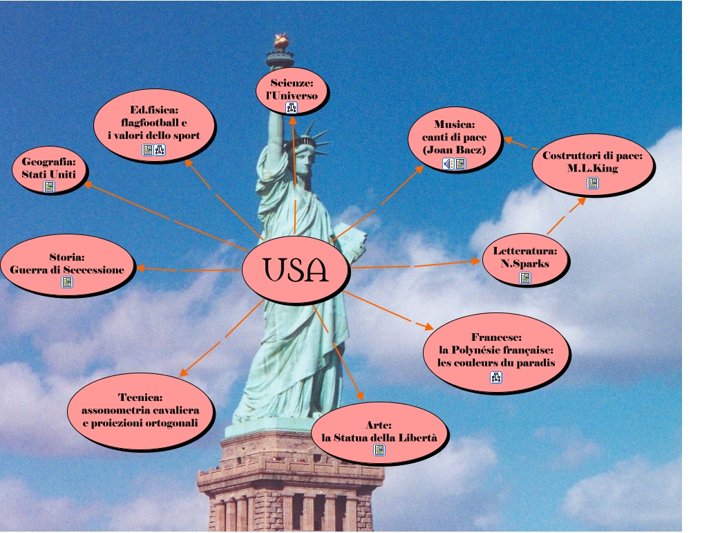 Questa Cmap, creata con IHMC CmapTools, contiene informazioni relative a: Mappa colloquio esame, USA Storia: Guerra di Seccessione, Costruttori di pace: M.L.King Musica: canti di pace (Joan Baez), USA Ed.fisica: flagfootball e i valori dello sport, USA Francese: la Polynésie française: les couleurs du paradis, USA Musica: canti di pace (Joan Baez), Letteratura: N.Sparks Costruttori di pace: M.L.King, USA Tecnica: assonometria cavaliera e proiezioni ortogonali, USA Arte: la Statua della Libertà, USA Scienze: l'Universo, USA Letteratura: N.Sparks, USA Geografia: Stati Uniti