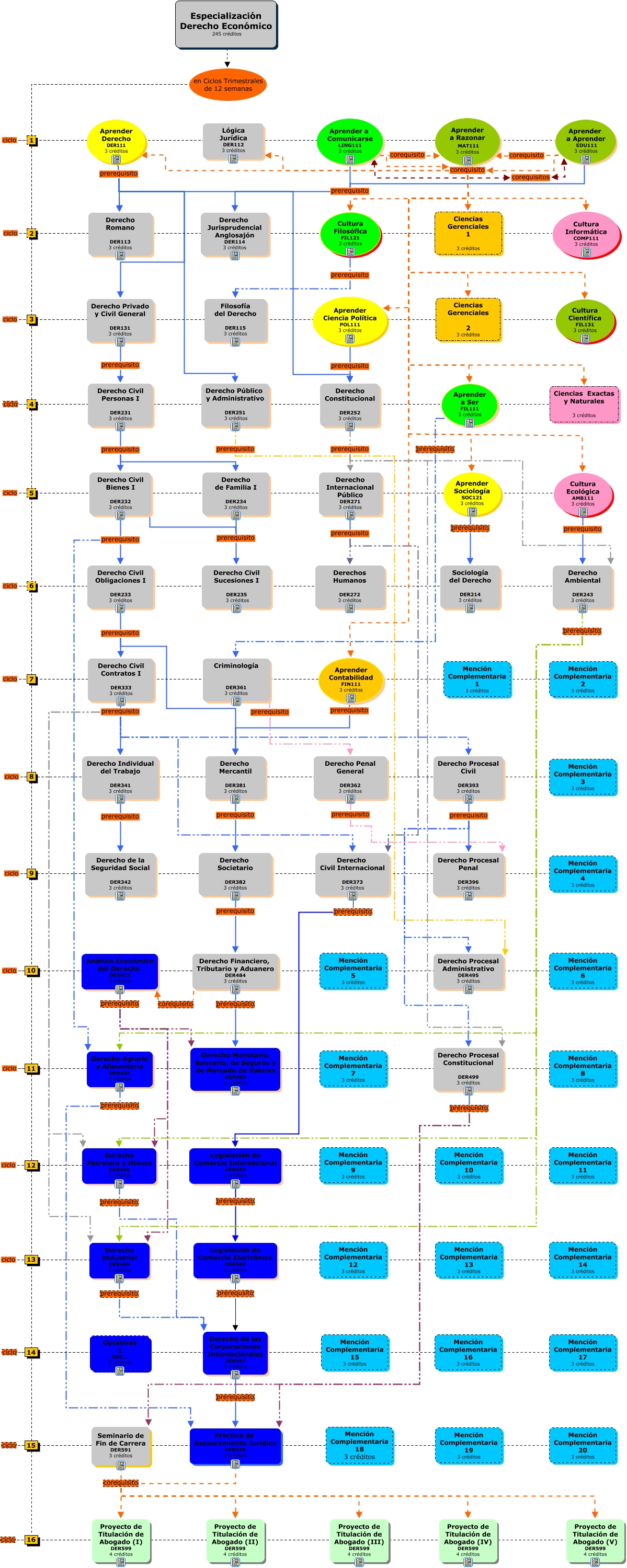 Este Cmap, tiene información relacionada con: Derecho - Derecho Economico, Aprender a Comunicarse LING111 3 créditos corequisito Ciencias Gerenciales 2 3 créditos, 2 ciclo Derecho Jurisprudencial Anglosajón DER114 3 créditos, Aprender a Aprender EDU111 3 créditos corequisito Aprender a Ser FIL111 3 créditos, 3 ciclo Derecho Privado y Civil General DER131 3 créditos, Derecho Individual del Trabajo DER341 3 créditos prerequisito Derecho de la Seguridad Social DER342 3 créditos, 15 ciclo Seminario de Fin de Carrera DER591 3 créditos, Aprender a Razonar MAT111 3 créditos corequisito Ciencias Gerenciales 1 3 créditos, Aprender a Aprender EDU111 3 créditos corequisito Cultura Científica FIL131 3 créditos, Derecho Civil Contratos I DER333 3 créditos prerequisito Derecho Individual del Trabajo DER341 3 créditos, 13 ciclo Mención Complementaria 12 3 créditos, Análisis Económico del Derecho DER415 3 créditos prerequisito Derecho Industrial DER586 3 créditos, Derecho Financiero, Tributario y Aduanero DER484 3 créditos corequisito Análisis Económico del Derecho DER415 3 créditos, Aprender a Aprender EDU111 3 créditos corequisito Cultura Filosófica FIL121 3 créditos, Aprender a Comunicarse LING111 3 créditos corequisito Aprender a Razonar MAT111 3 créditos, 8 ciclo Mención Complementaria 3 3 créditos, Derecho Civil Contratos I DER333 3 créditos prerequisito Derecho Petrolero y Minero DER486 3 créditos, Derecho Procesal Constitucional DER499 3 créditos prerequisito Práctica de Asesoramiento Jurídico DER598 3 créditos, 4 ciclo Ciencias Exactas y Naturales 3 créditos, 15 ciclo Mención Complementaria 18 3 créditos, Derecho Societario DER382 3 créditos prerequisito Derecho Financiero, Tributario y Aduanero DER484 3 créditos