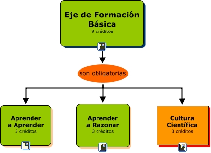 Este Cmap, tiene información relacionada con: Eje Basicos, Eje de Formación Básica 9 créditos son obligatorias Aprender a Razonar 3 créditos, Eje de Formación Básica 9 créditos son obligatorias Aprender a Aprender 3 créditos, Eje de Formación Básica 9 créditos son obligatorias Cultura Científica 3 créditos