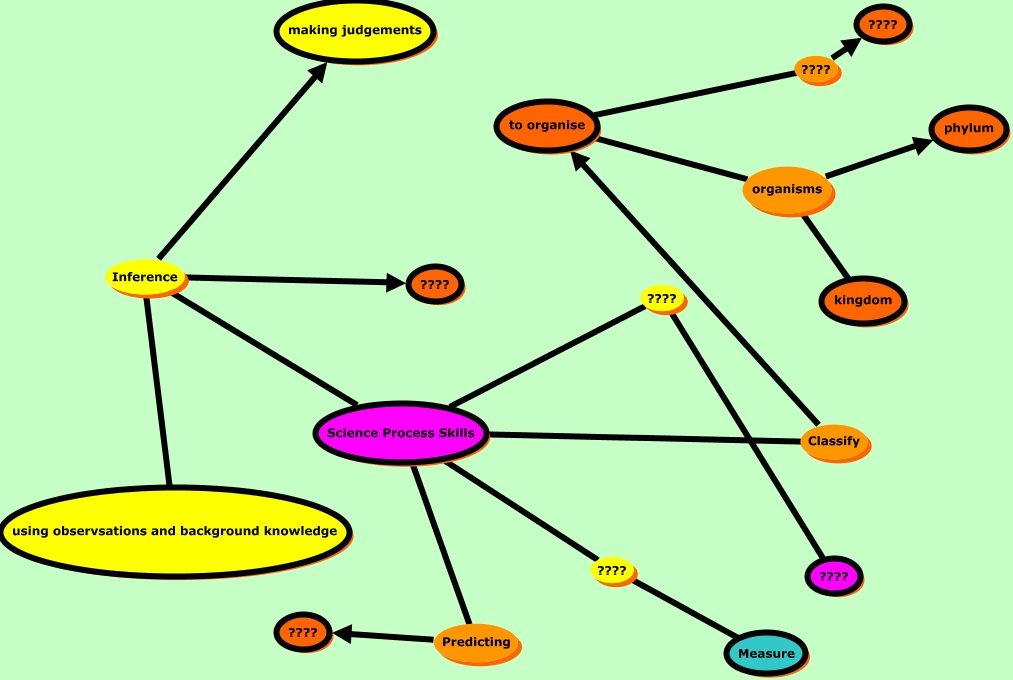 This Concept Map, created with IHMC CmapTools, has information related to: process, Science Process Skills Inference using observsations and background knowledge, to organise organisms kingdom, Science Process Skills Classify to organise, Science Process Skills ???? ????, Science Process Skills Inference making judgements, Science Process Skills Inference ????, Science Process Skills ???? Measure, Science Process Skills Predicting ????, to organise ???? ????, to organise organisms phylum